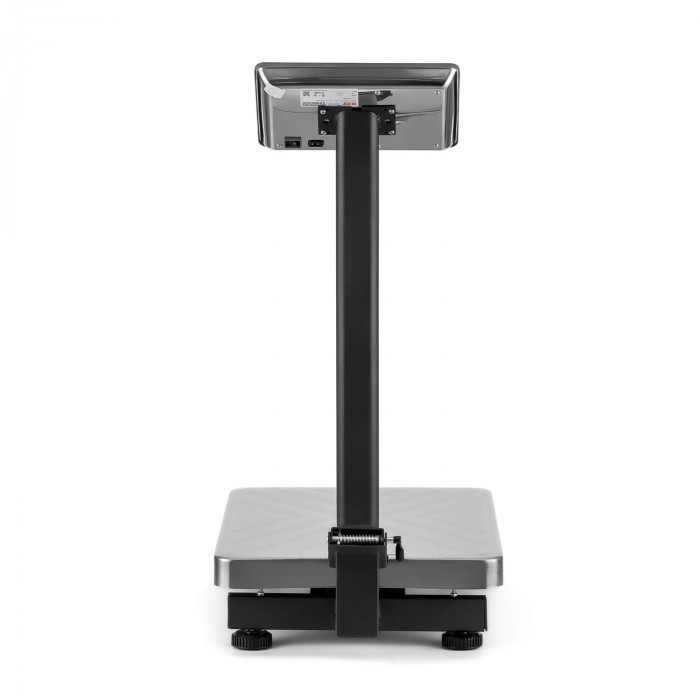 На выносной стойке установлен LED-дисплей. Экран закреплен на металлическом основании. Это повышает прочность конструкции. На табло предусмотрено 16 разрядов индикации. Размер цифр: 8*14 мм. Дисплей показывает массу товара, цену за 1 кг, стоимость покупки, сумму сдачи. Можно регулировать наклон табло, чтобы прочитать цифры при любом освещении.